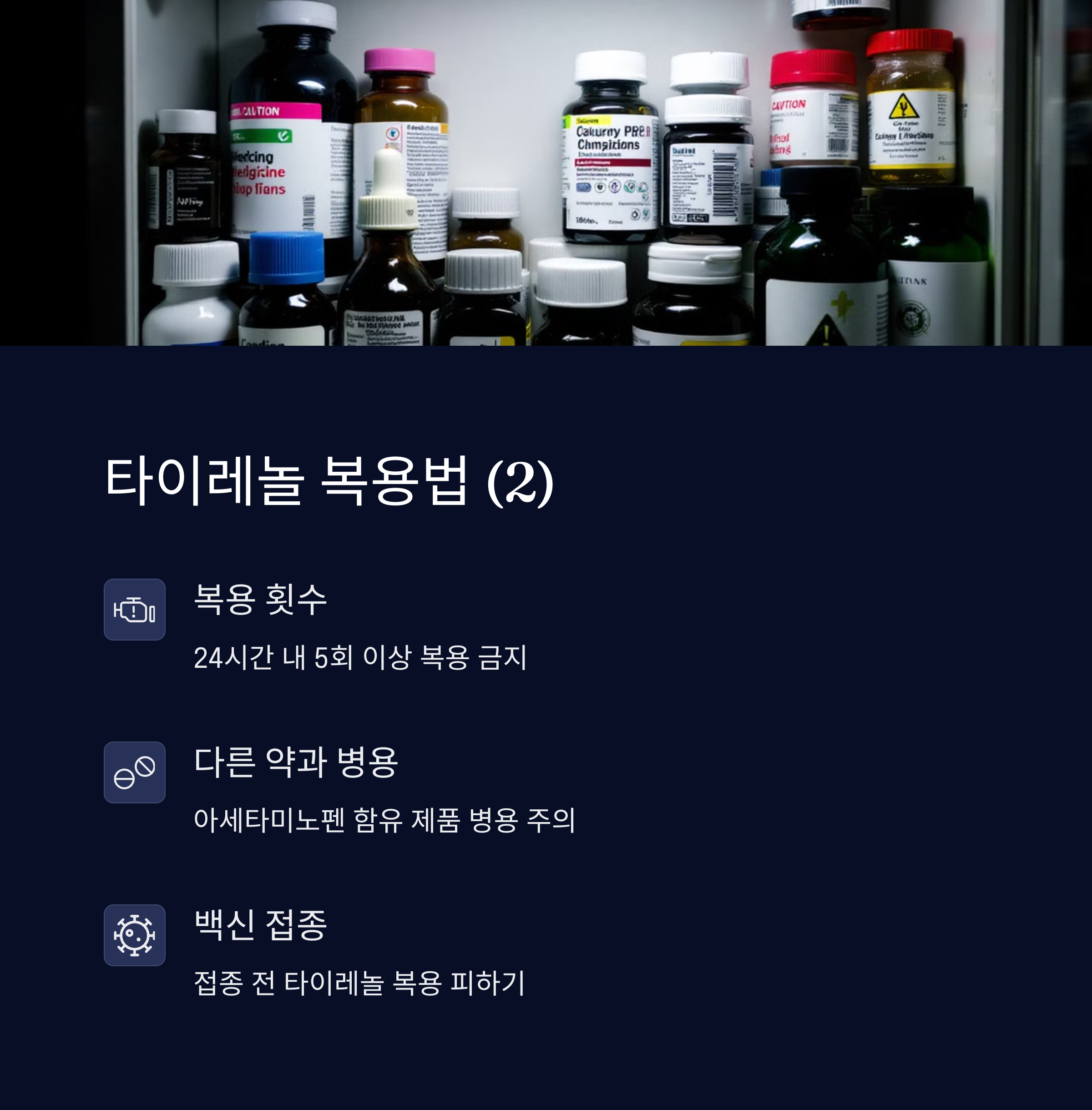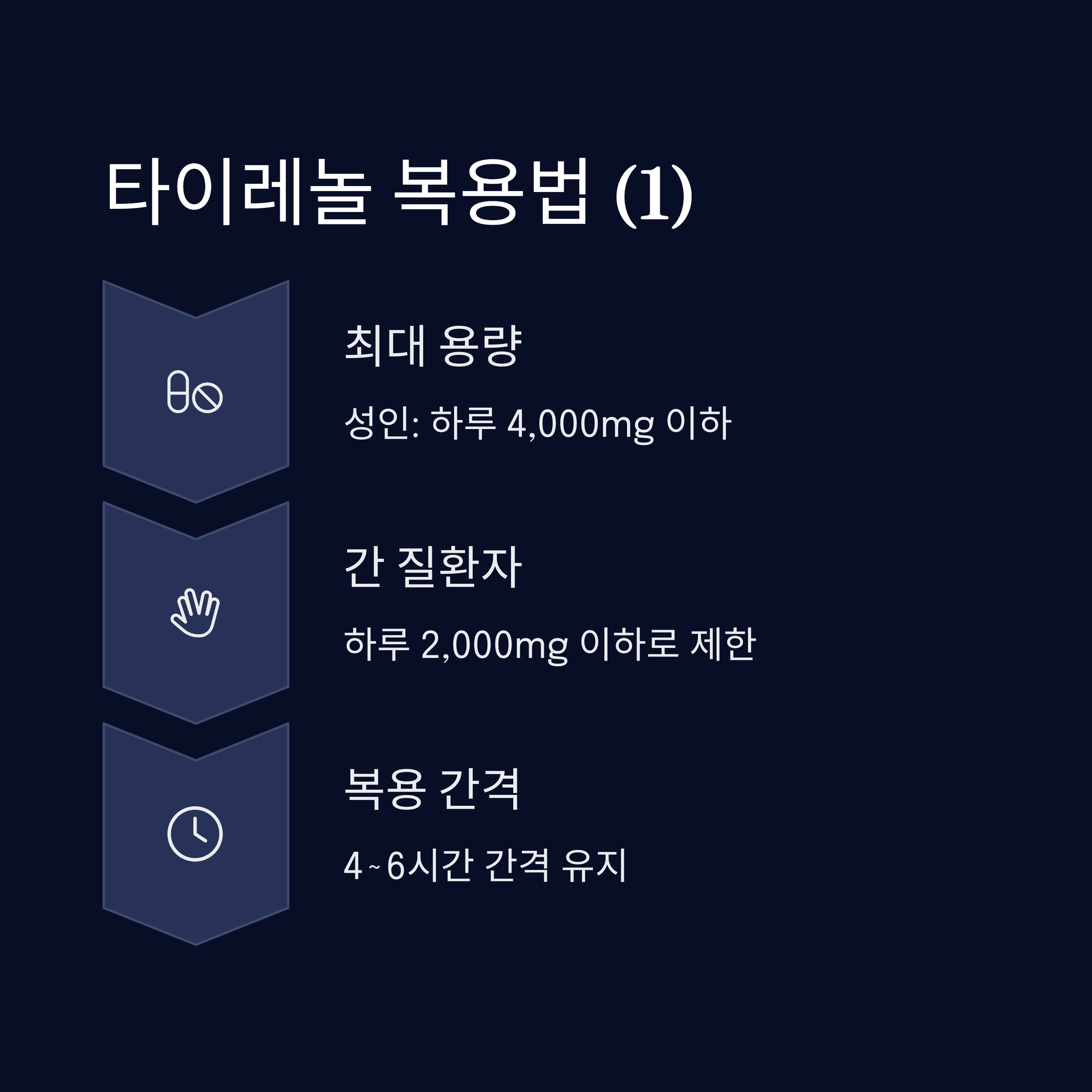 | 타이레놀 복용법 | 성인 기준 하루 최대 4,000mg, 4~6시간 간격으로 복용 |